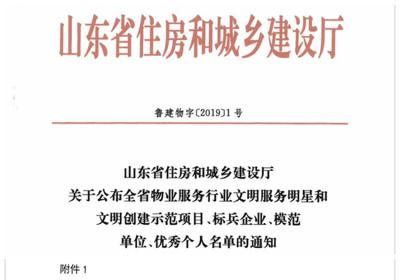 勝潔物業項目經理周利平被評為山東省物業行業文明創建服務明星。