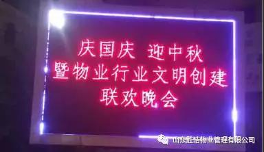 2017年9月30日晚,山東勝潔物業(yè)管理有限公司墾利帝紗富仕城項目處舉辦了“慶國慶 迎中秋 暨物業(yè)行業(yè)文明創(chuàng)建聯(lián)歡晚會”,與開發(fā)商、業(yè)主一同歡度國慶及中秋,增進開發(fā)商、物業(yè)及業(yè)主三方的感情。