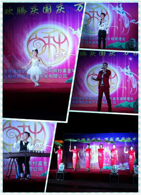 帝紗富仕城員工、開發(fā)商員工及業(yè)主們都積極參與其中,為大家準備了豐富多彩的節(jié)目,如舞蹈《花鳳凰》、古箏獨奏《青花瓷》、歌曲串燒、女聲獨唱《我和我的祖國》等。