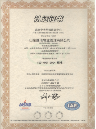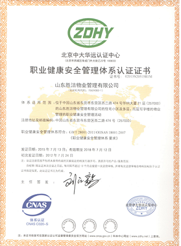 山東勝潔物業管理有限公司一向將服務質量看作重中之重,是公司的根本。公司通過了ISO9001質量管理體系認證、ISO14001環境管理體系認證及OHSAS18001職業健康安全管理體系認證,從各方面對服務質量進行管控。