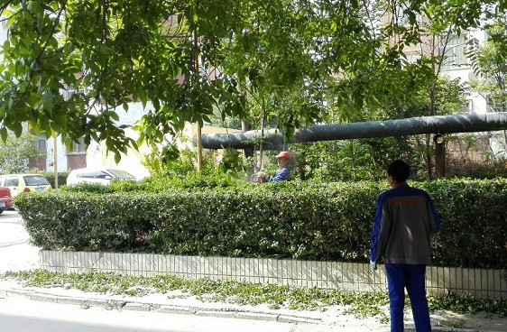 2015年5月5號,山東勝潔集團勝安小區項目處綠化修剪工作