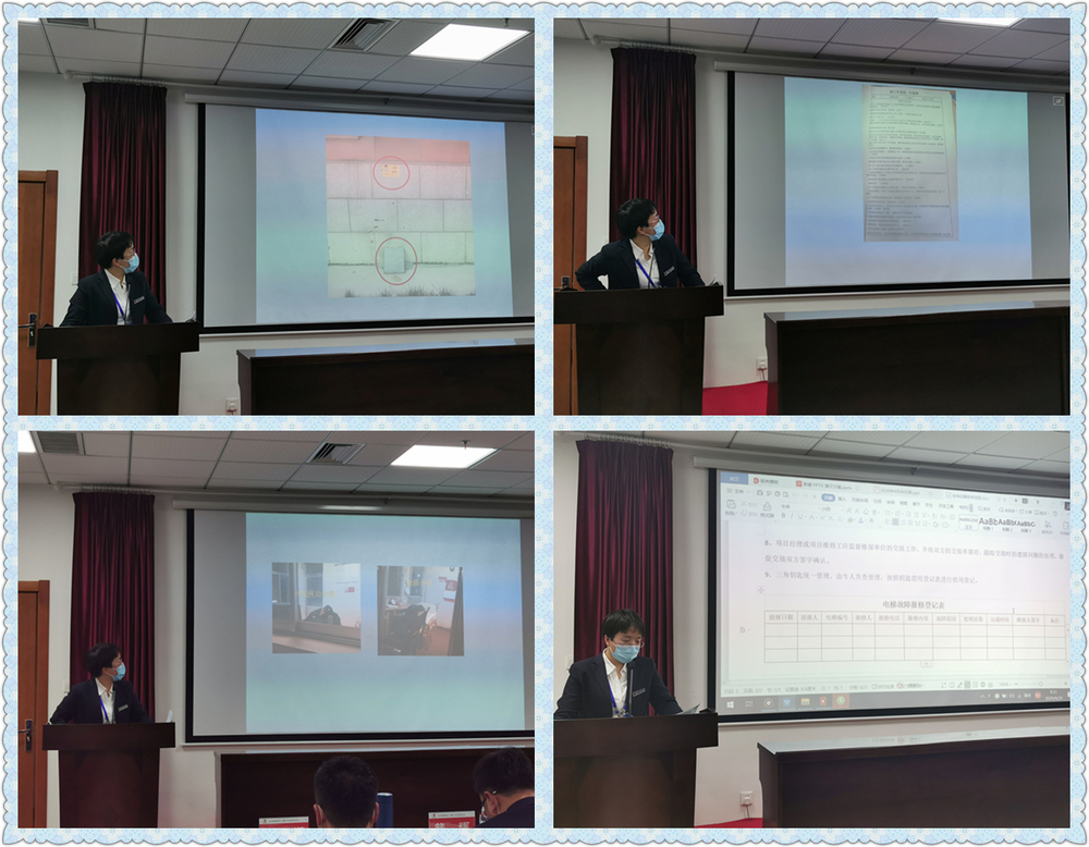 品質部徐部長在項目經理會議上對品質安全檢查情況進行總結,對規范項目進行表揚,指出所需整改的問題,對夜查情況進行通報,強調電梯安全以及故障報修,對下一步加強服務品質提升提出了要求。