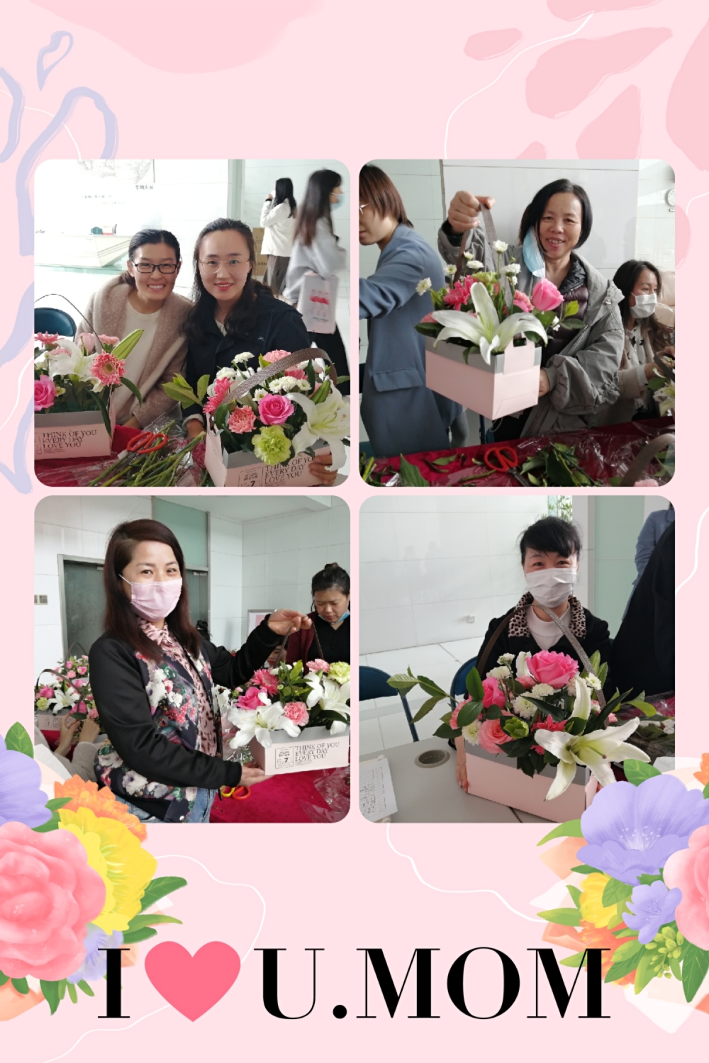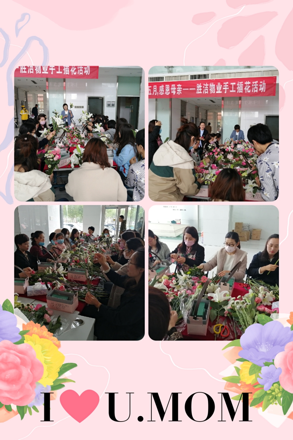 一束鮮花,一份溫情!世間最偉大的愛莫過于母愛,世間最真摯的情莫過于親情。2020年5月9日上午,勝潔物業華納大廈項目處在大廈一樓大廳開展“溫情五月,感恩母親”母親節手工插花活動。