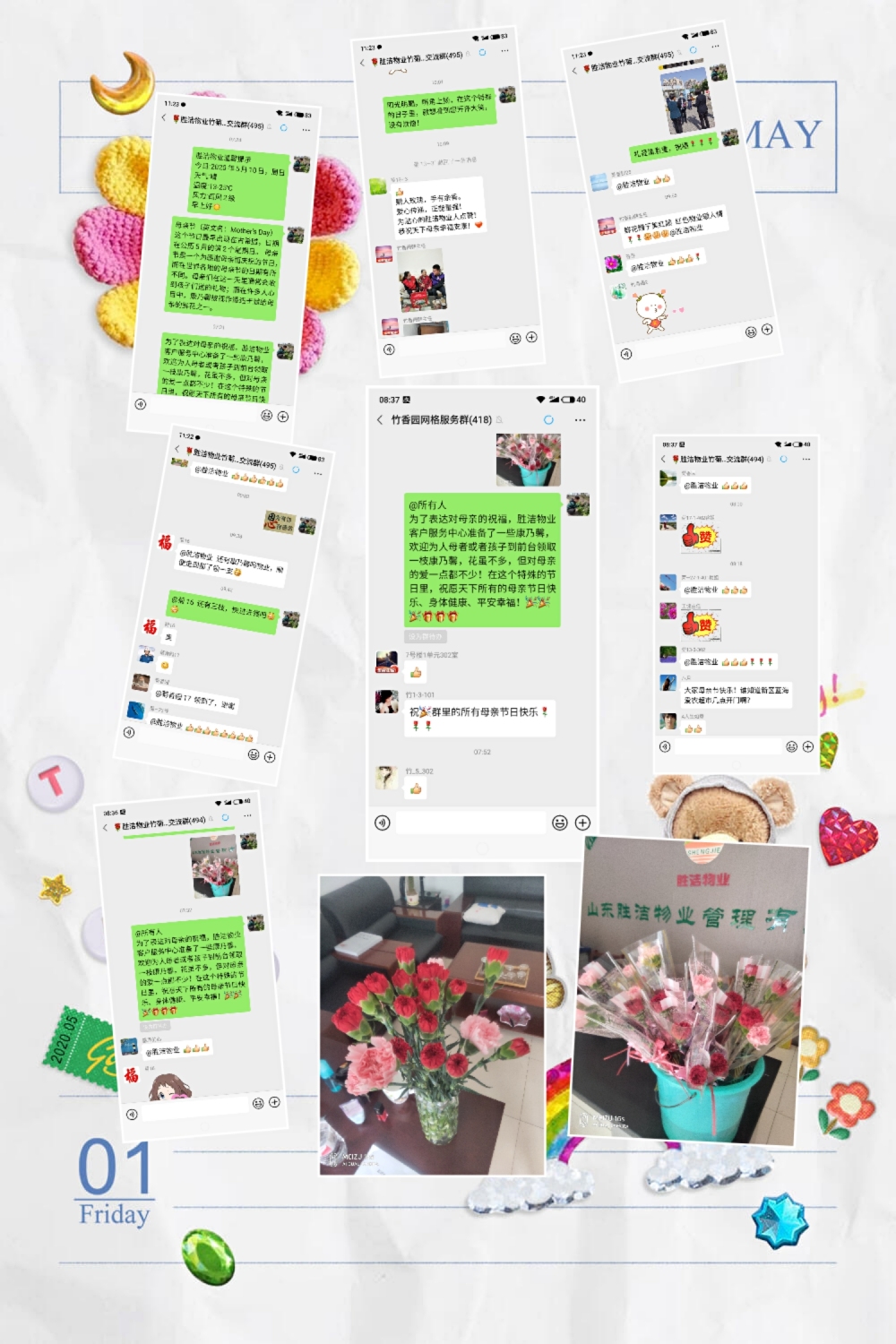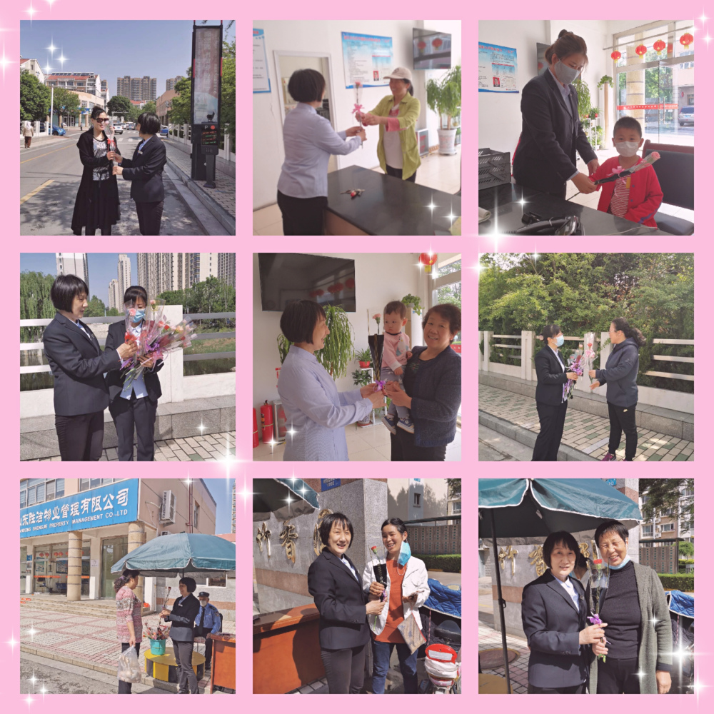 5月10日上午,在母親節這個特殊的節日里,為了表達對母親的深深祝福,勝潔物業新區住宅客戶服務中心精心準備了一些康乃馨,在前臺和小區門口贈與往來的女士和家人們,花雖不多,但對母親的愛一點都不少!此次活動獲得業主的一致點贊。