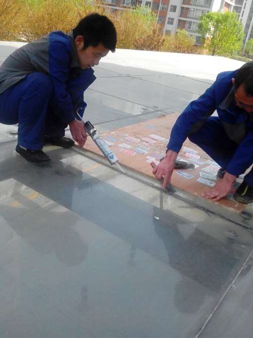 金融小區(qū)一號(hào)車(chē)庫(kù)天窗棚維修現(xiàn)場(chǎng)