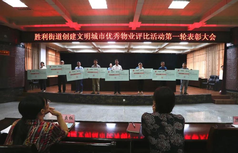 8月31日,勝利街道召開創建文明城優秀物業“紅管家”評比活動第一輪表彰大會。山東勝潔物業管理有限公司惠澤小區項目處榮獲“紅管家”二等獎,項目經理曹漢英(右三)上臺領獎。
