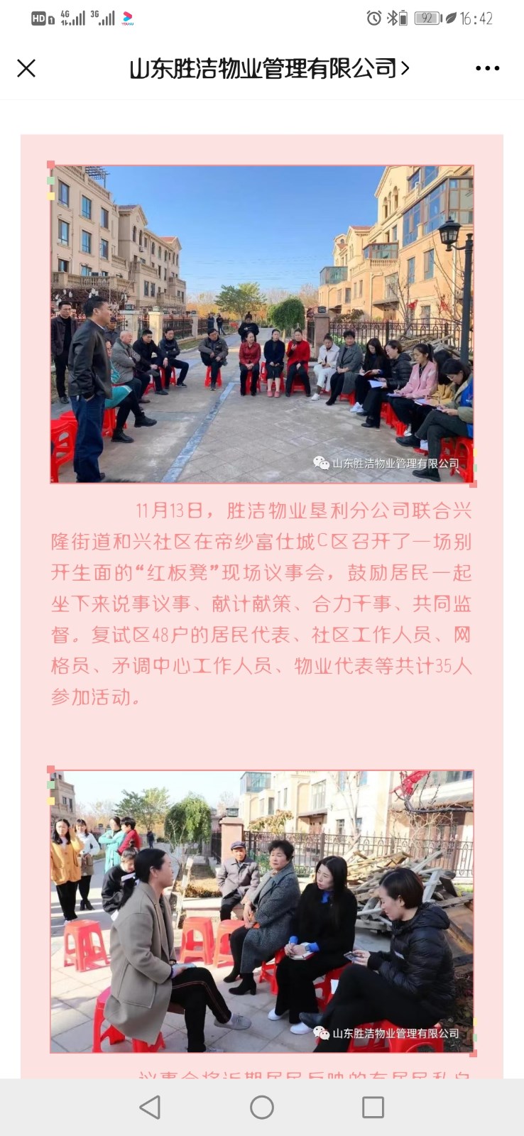 勝潔物業墾利分公司“紅板凳”現場議事會