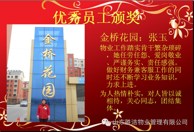 淳樸友善,樂于奉獻(xiàn),愛崗敬業(yè),勤勞誠懇,咱們勝潔人。