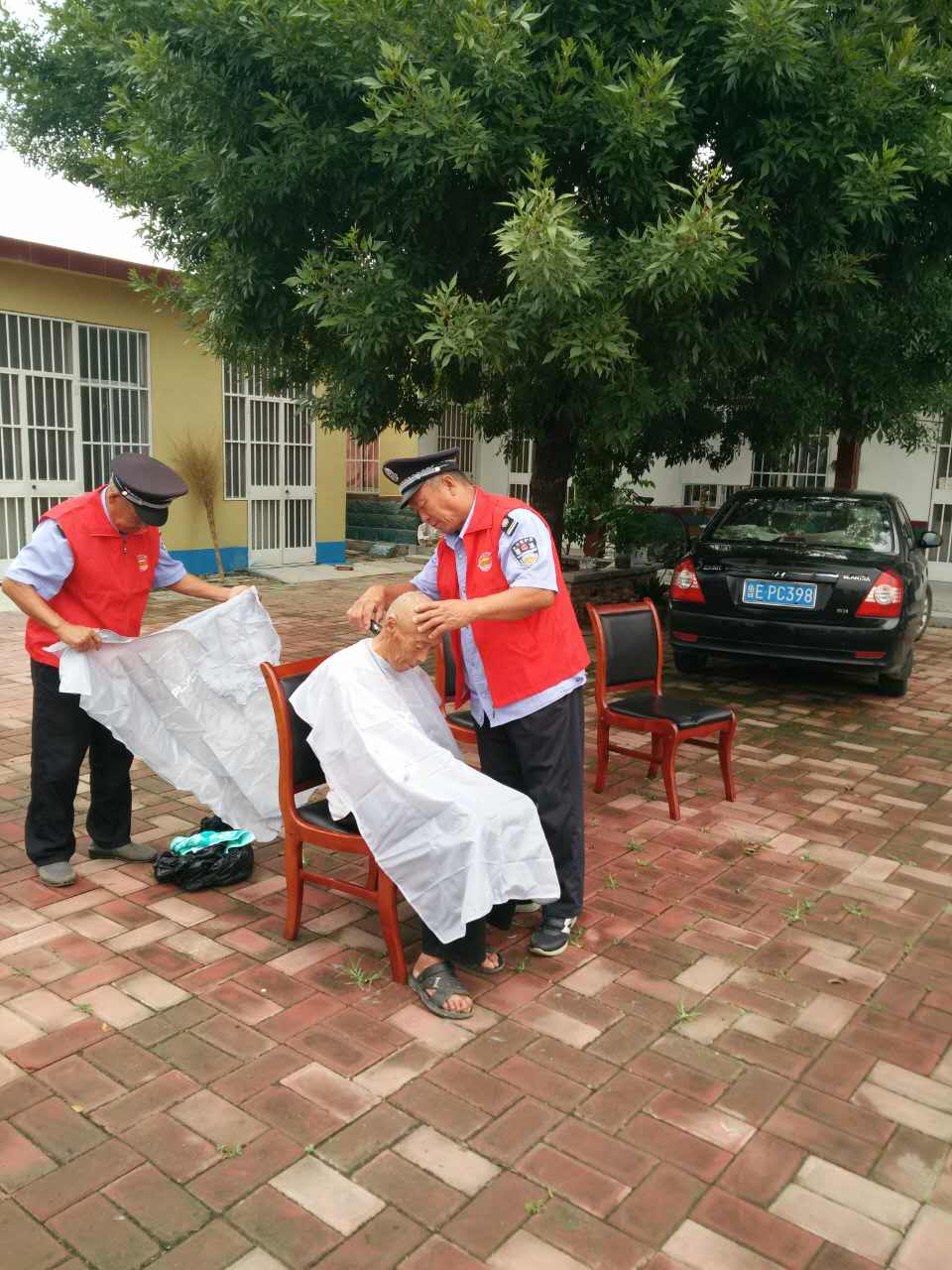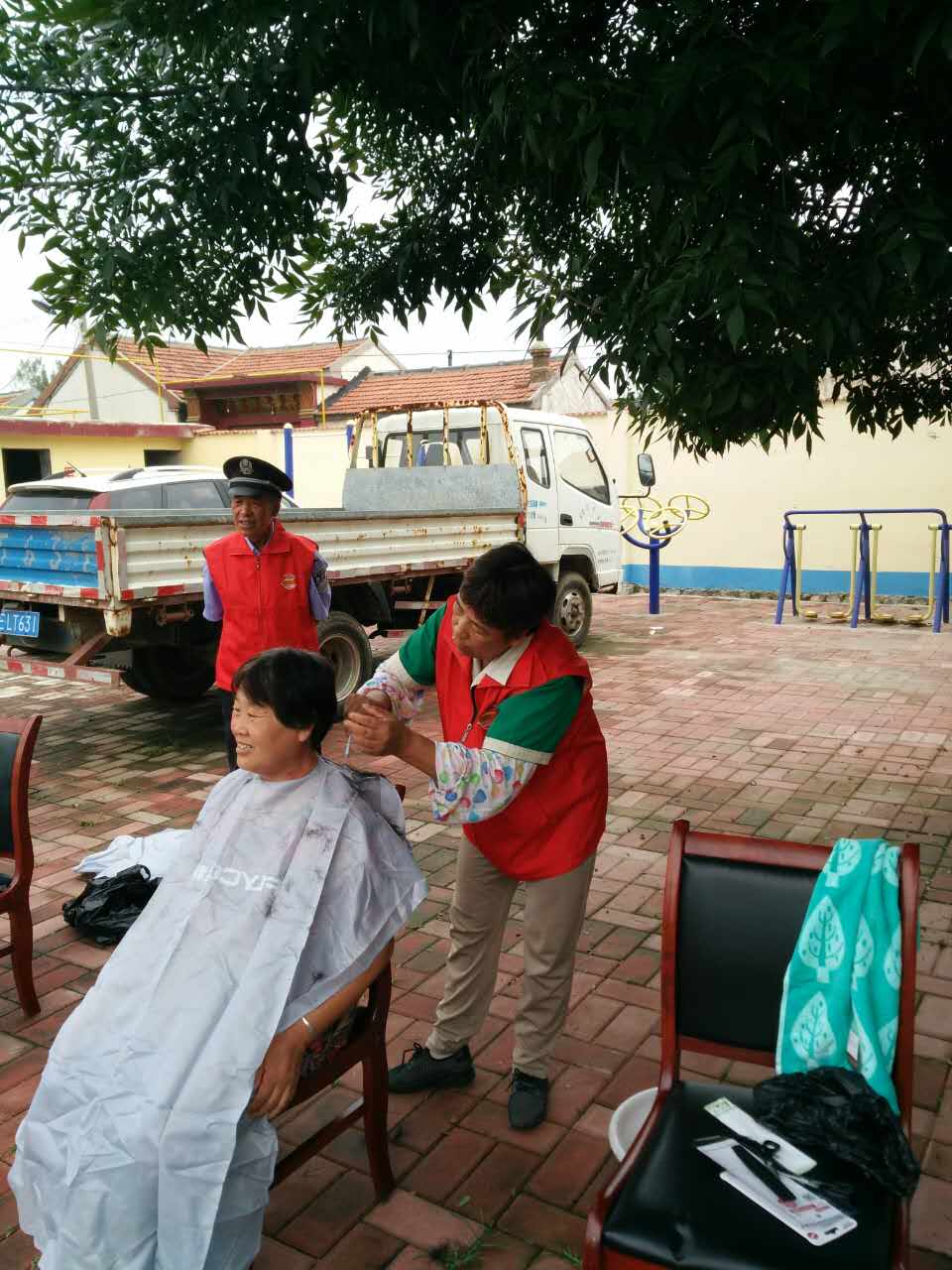 志愿服務(wù)隊(duì)成員們帶著毛巾、理發(fā)工具,來(lái)到村民中間,為他們免費(fèi)理發(fā),期間還與村民們愉快地聊天,拉近了彼此的距離。