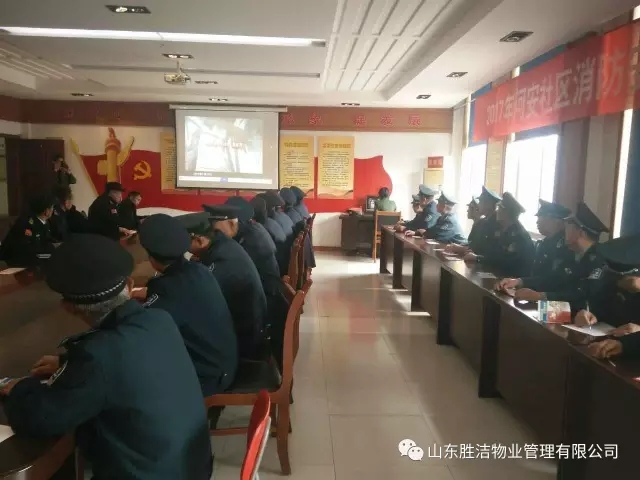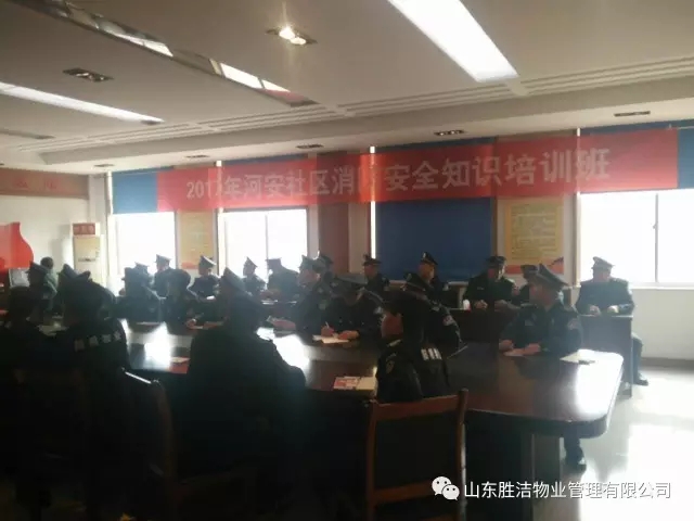 2017年3月22日,河安社區組織各公司秩序維護人員參加消防培訓,山東勝潔集團河安項目處秩序維護人員也參加了此次培訓。