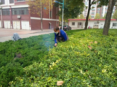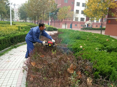 金盾項(xiàng)目處工作人員對(duì)小區(qū)內(nèi)綠化進(jìn)行修剪