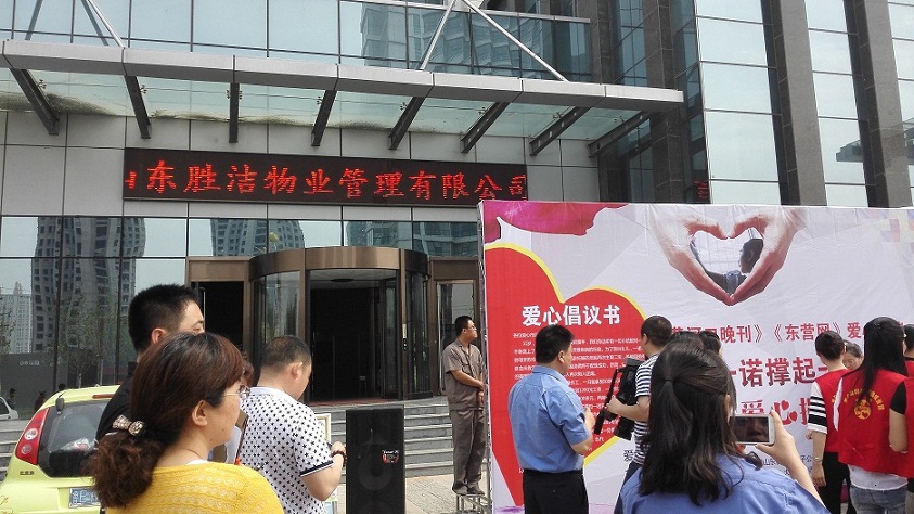 為了這次募捐活動(dòng)能夠順利圓滿的完成,勝潔物業(yè)國(guó)貿(mào)項(xiàng)目處秩序維護(hù)員早晨七點(diǎn)就開始了準(zhǔn)備工作,保持好募捐活動(dòng)現(xiàn)場(chǎng)衛(wèi)生,拉好警戒線,搭建愛心舞臺(tái),維護(hù)好募捐活動(dòng)現(xiàn)場(chǎng)秩序。活動(dòng)于9點(diǎn)正式開始,首先是東營(yíng)電視臺(tái)的主持人進(jìn)行開幕詞演說,介紹了小姑娘一諾的一些情況,其次感謝勝潔物業(yè)等愛心企業(yè)的募捐。接著,勝潔物業(yè)的全體員工井然有序的去奉獻(xiàn)自己的愛心,將自己的愛傳遞給一諾。最后,一諾一家人走上愛心舞臺(tái),感動(dòng)的痛哭流涕,一諾的父親跪地叩謝所有奉獻(xiàn)愛心的市民及勝潔物業(yè)等愛心企業(yè)。