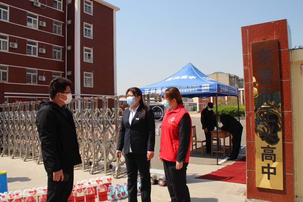 隨著疫情形勢逐漸好轉,全區企業復工、復產正在有序進行,學校復課工作也在準備之中。4月13日上午,勝潔物業黨支部星火志愿服務分隊的志愿者們來到即將復學的東營市正興高中,開展“助力復學我當先”志愿活動。為學校捐贈口罩、酒精、84消毒液和噴壺等愛心防疫物資。